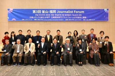 大塚総領事による「第3回釜山-福岡ジャーナリストフォーラム」への出席<26.02.26> 2月21日(土曜日)、大塚総領事は、東西大学校日本研究センターが主催した「第3回釜山-福岡ジャーナリストフォーラム」に出席し、祝辞を述べました。今回のフォーラムには、日韓のジャーナリスト及び研究者の方々が出席され、「日韓メディアの新たな地平 -日韓関係専門プラットフォームの可能性と課題-」というテーマで活発な議論が行われました。