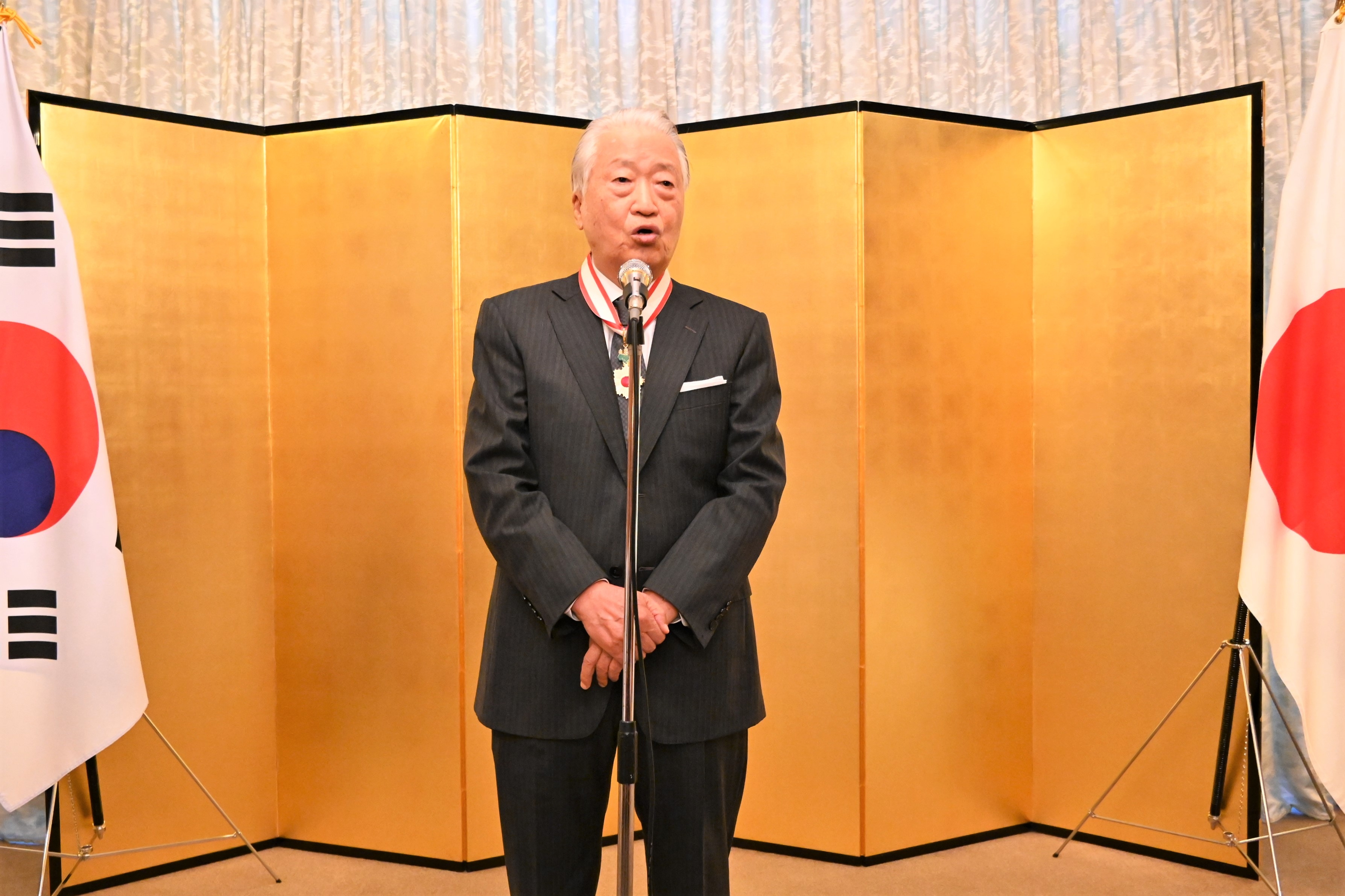 曺日相元館長は、叙勲伝達式の挨拶において、今回の叙勲に対する感謝の意を表し、今後も日本と韓国の芸術を通じた両国間の交流拡大に向けて努力していく旨述べました。