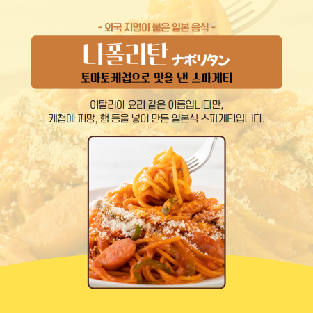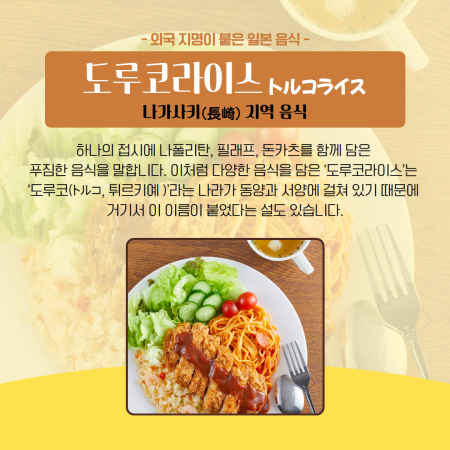 음식 중에는 나폴리탄(ナポリタン) 이나 도루코라이스(トルコライス)처럼